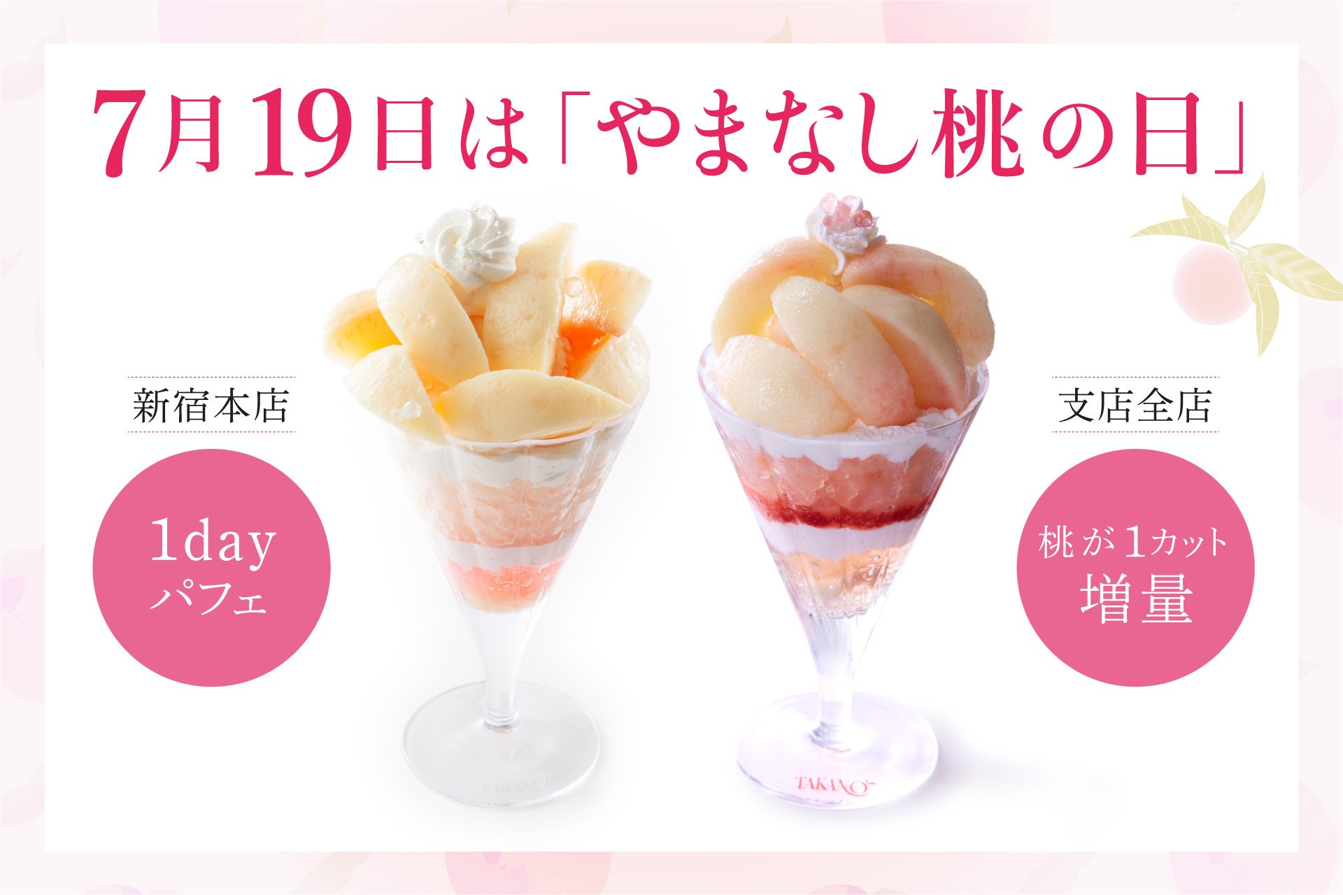 さらに、7/19(金)はやまなし桃の日。支店6店舗では桃のパフェに桃を通常より1カット増量してご提供します。